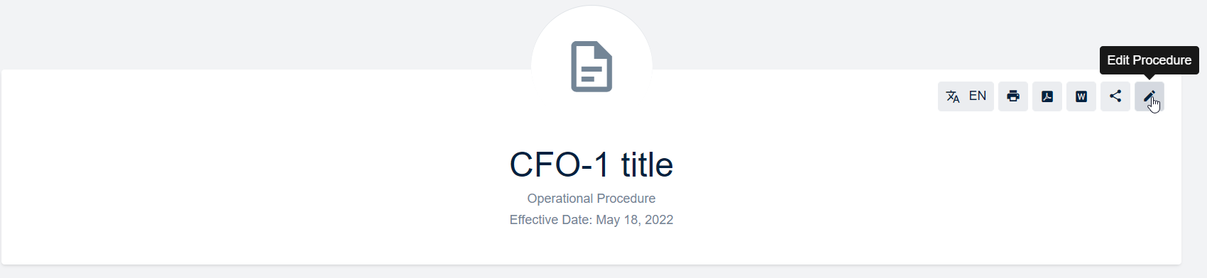 - Find the title, the type and the effective date of the procedure.