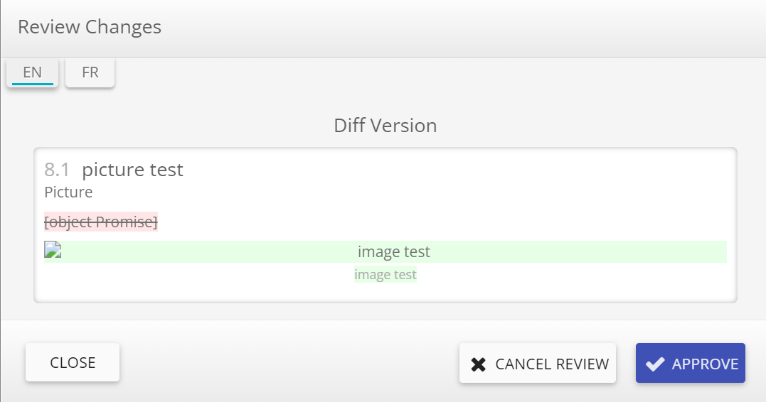 For each updated section, click on the 'Need review' button in order to request a review.