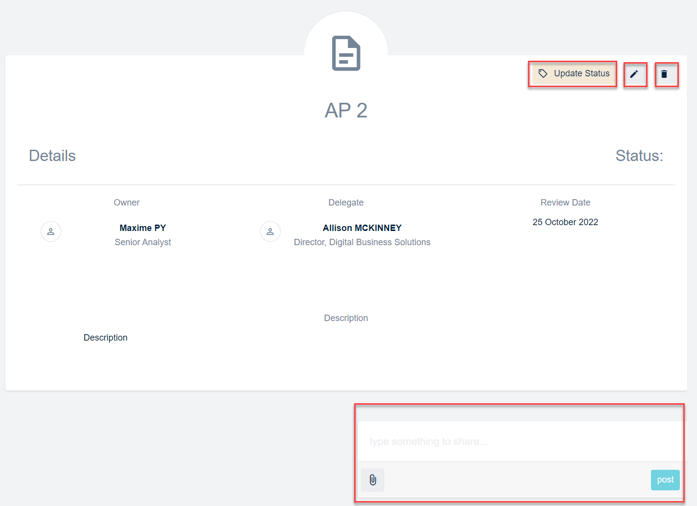 - Click on the 'update status' button in order to update the derogation action plan status and add attachment if necessary;