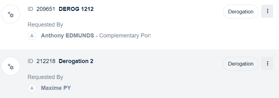 From the derogation list, click on the menu button of the derogation that you want to edit and click on the 'edit' button in order to display the derogation edit screen. From this screen, you can edit it and update the field that you want to modify.