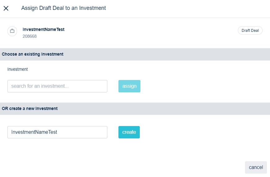 From the 'unmanaged' draft deal list you can edit, ignore a draft deal or assign an investment to it.