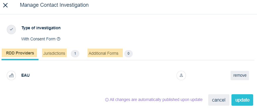 - Choose the type of the investigation you want for the contact with 'manage investigation' button.