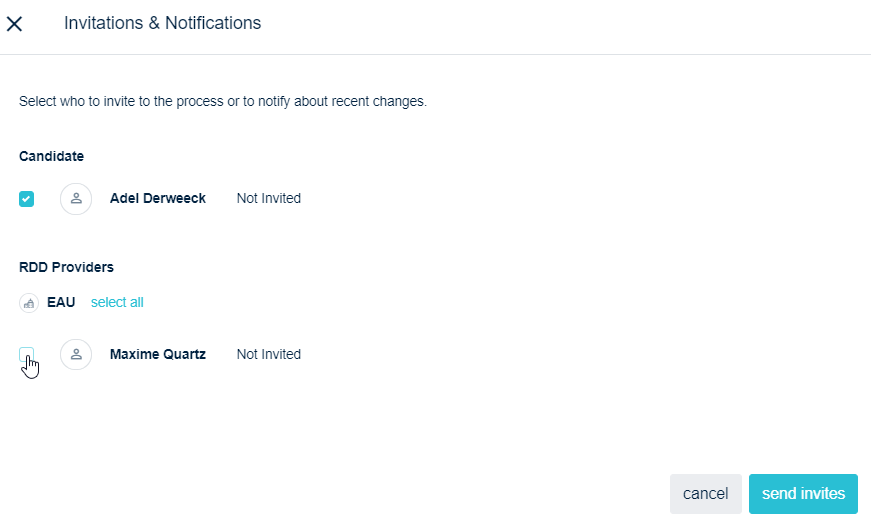 - Invite candidates and RDD providers by clicking on the 'invite candidates and RDD providers' button