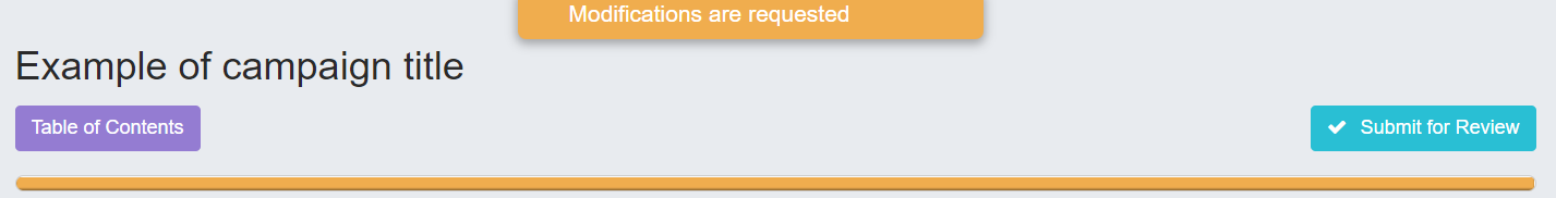 From the external platform, your campaign appears with the 'modifications requested' status. Update what you need to change and click on the 'submit for review' button.