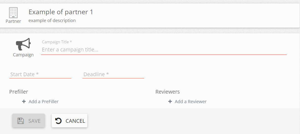 In order to create an operational due diligence campaign you have to create a partner and associate a campaign and a questionnaire template with it.