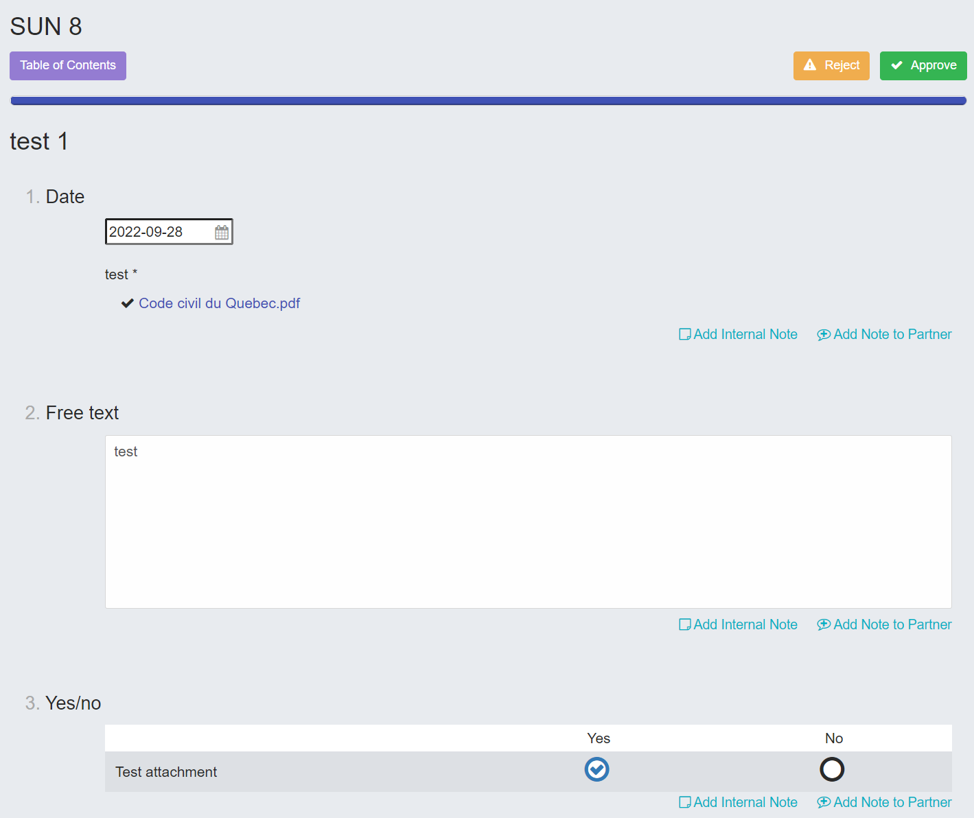 - Add note to partner uner the questions by clicking on the 'add note to partner' button.