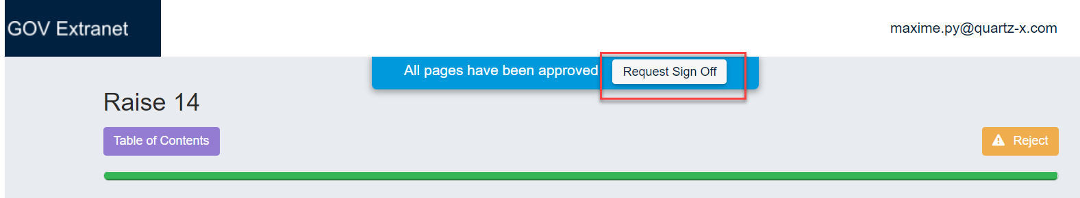 The 'request sign off' button will appear, click on it to approve the request. You can cancel your request sign-off.