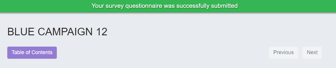 From the homepage of the external platform, click on the survey you want to respond to and answer the questions. Click on 'submit survey' to submit your answers. A message should appear at the top of the screen to let you know that the survey is successfully submitted.